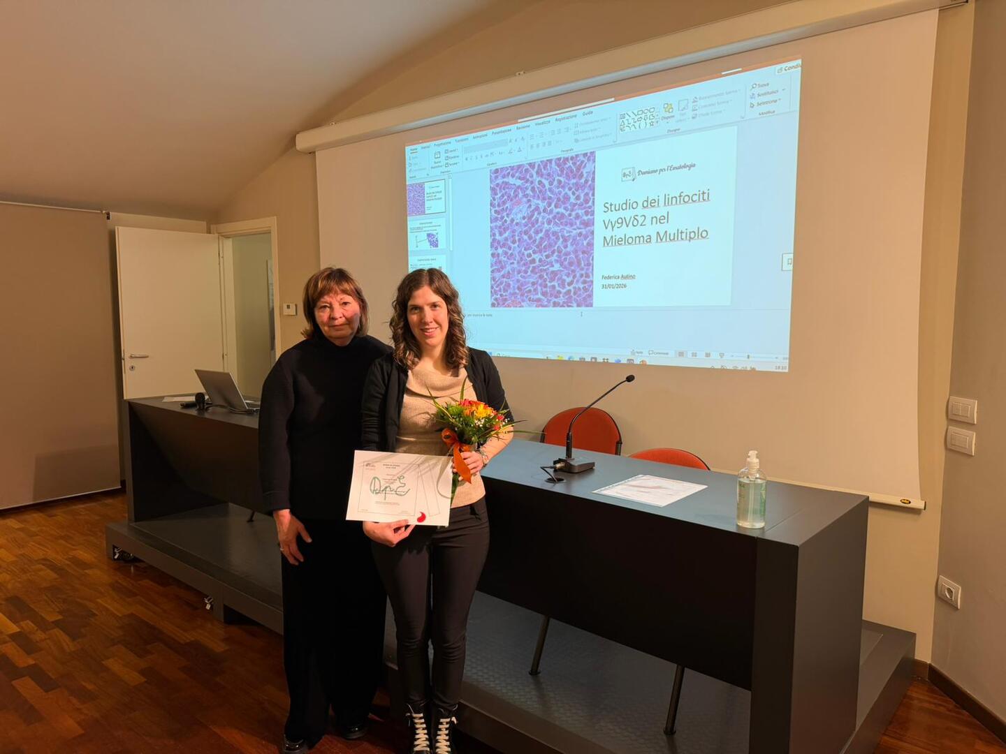 La vincitrice dell’edizione 2026 è Federica Autino, biotecnologa e dottoranda di ricerca presso il Dipartimento di Biotecnologie Molecolari e Scienze della Salute dell’Università degli Studi di Torino. Il suo progetto di ricerca “Studio dei linfociti Vγ9Vδ2 nel mieloma multiplo” si concentra sul comportamento di un sottogruppo di linfociti T, cellule del sangue appartenenti ai globuli bianchi e cruciali nella risposta immunitaria, in pazienti affetti da mieloma multiplo, tumore ematologico maligno del midollo osseo. Lo studio mira a comprendere quali fattori del microambiente possano condizionare questa sottopopolazione di linfociti T e a chiarire come riattivarne i meccanismi di risposta. L’obiettivo è valutare la possibilità di classificare i pazienti in base alla loro capacità di attivare una risposta immunitaria efficace.