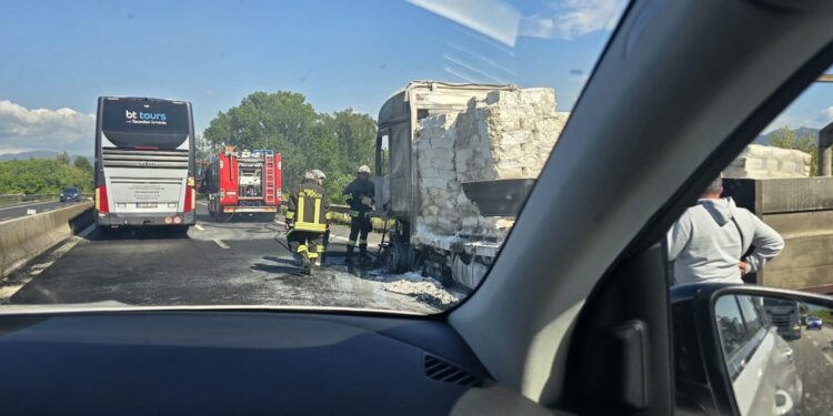 Sul posto sono intervenuti i vigili del fuoco. Traffico momentaneamente bloccato in direzione Terni per consentire ai vigili del fuoco di spegnere le fiamme e mettere in sicurezza l’area.