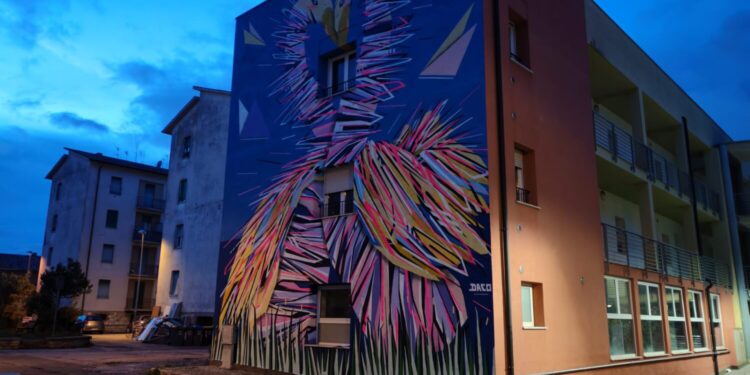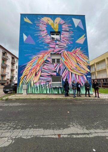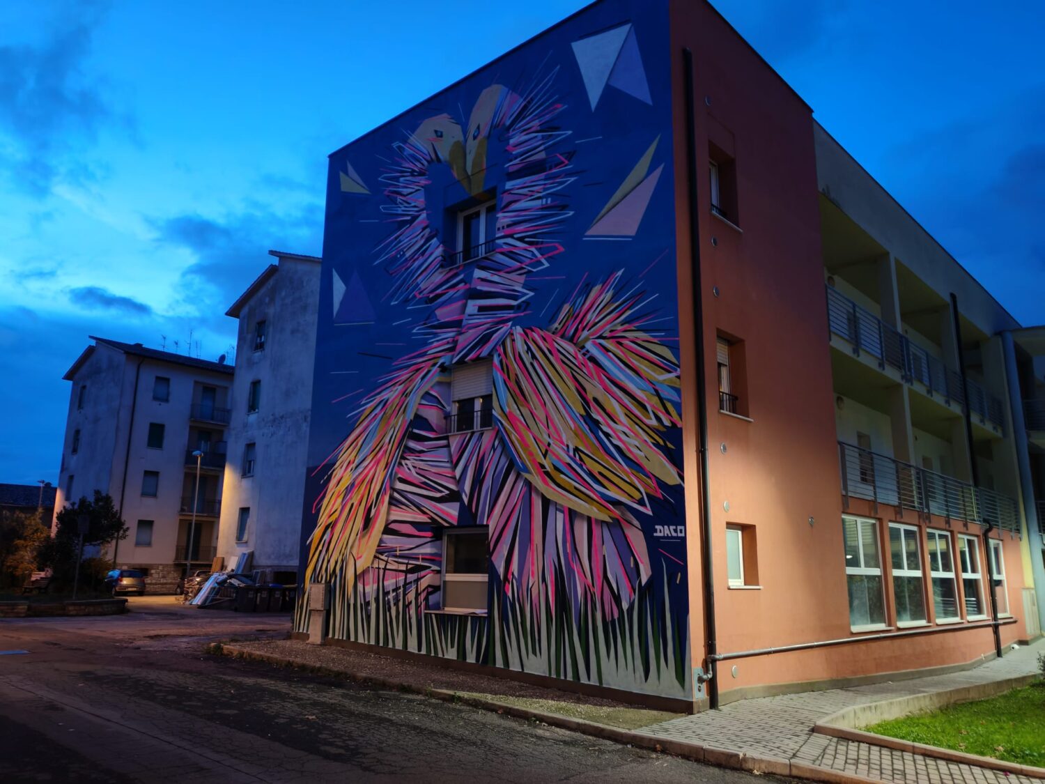 “Il mio lavoro in generale è di figurazione, faccio molti animali e per me è importante portare la natura nella città: metto molti colori per sfumare i muri che sono spesso un po’ tristi e questo fa bene alle persone”, spiega DACO. “Ho l’abitudine di lavorare in molte città diverse in tutto il mondo ed è sempre una nuova sfida per me arrivare in un luogo che non conosco, incontrare persone nuove ed adattarmi. In questo quartiere di Terni, la relazione con le persone è stata superba dall’inizio. Sono molto contento”.
