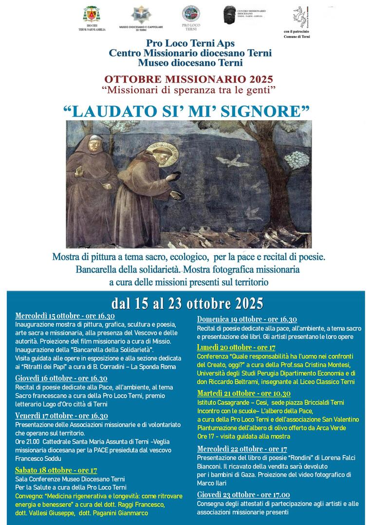 “Laudato si’ mi’ Signore” è la mostra fotografica e documentaria missionaria, di pittura, grafica, scultura allestita dal 15 al 23 ottobre nelle sale espositive del museo diocesano di Terni.