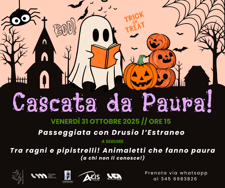 Il 31 ottobre alla Cascata delle Marmore arriva “Cascata da Paura!”: un’avventura a tema Halloween lungo il sentiero 3 insieme a Drusio l’Estraneo, tra racconti misteriosi e leggende che mettono i brividi. A seguire, l’attività “Tra ragni e pipistrelli. Animaletti che fanno paura a chi non li conosce!” per scoprire perché queste piccole creature, presenti anche in Cascata, sono così preziose per la natura.