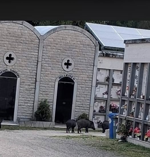 Forse anche loro, i cinghiali hanno un giorno da dedicare ai defunti. Ho forse, come qualcuno ha sottolineato, c’è chi si è reincarnato come prefvede una religione orientale. Fatto sta che non è usuale vedere cinghiali passeggiare con calma olimpica dentro un cimitero e quello di Narni Scalo in particolare.