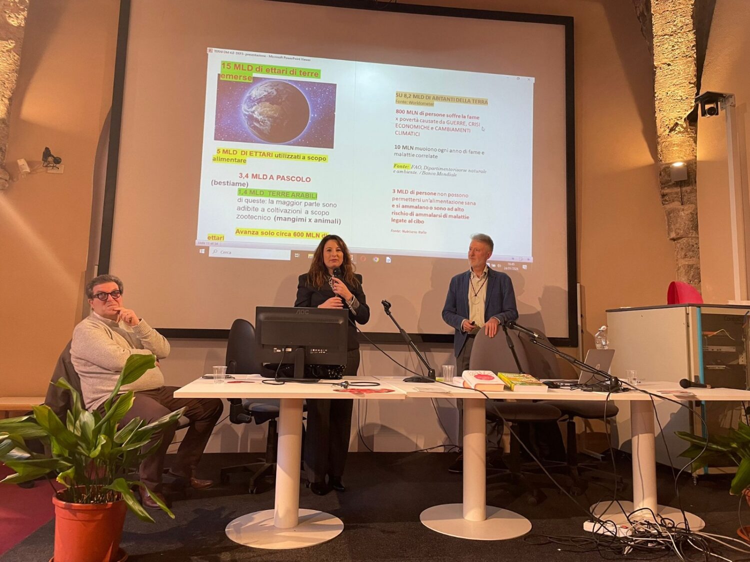 L’evento, pensato da Antonella Campili e Pamela Stentella, si è reso possibile grazie anche al sostegno dell’Associazione Nuova Magna Grecia Viva e del suo Presidente Antonio Apuzzo. Dopo una breve introduzione di Apuzzo, c’ è stato anche il saluto istituzionale dell’assessore alla scuola Viviana Altamura. Il relatore d’eccezione è stato il dott. Michele Riefoli – biologo, nutrizionista , già docente di scienze motorie, nonché presidente dell’ Associazione Aps Ottavo Senso- Consapevolezza del Benessere, che da oltre 40 anni si occupa di salute, consapevolezza alimentare e percorsi detox. Fin da subito il dott. Riefoli è riuscito a catturare l’attenzione dei tanti partecipanti che hanno gremito la sala parlando di vera dieta mediterranea e non solo. Un’alimentazione che viene da lontano, radicata nel mondo rurale del sud Italia e paesi mediterranei come Grecia, Spagna e nord Africa. Nel 1950 alcuni ricercatori scoprirono che nelle popolazioni di questi Paesi, grazie a questo tipo di alimentazione, si era riscontrato un basso tasso di malattie cardiovascolari e neurodegenerative. Nel 2010 l’Unesco la annovera tra i beni immateriali da tutelare. Il Prof. Riefoli ha percorso un viaggio tra la consapevolezza alimentare attraverso il CCQQ (Cosa, Come, Quando e Quanto), la conoscenza dei processi di produzione-lavorazione e conservazione dei cibi, per arrivare a descrivere le attuali e possibili alimentazioni a base (principalmente o totalmente) vegetale, spiegando perché sono le uniche sostenibili per l’ ambiente e il nostro Pianeta. Attraverso dati ed evidenze scientifiche ha evidenziato i principali problemi derivanti dal consumo di carne, pesce, latticini e uova . Infine, i grandi benefici dell’esercizio fisico strutturato da abbinare all’alimentazione. La serata si è conclusa con l’offerta di un buffet a base vegetale di prodotti locali biologici, grazie a due locali ternani che hanno sposato l’iniziativa: Unima Food e Lab.Biciclario Bistrò.
