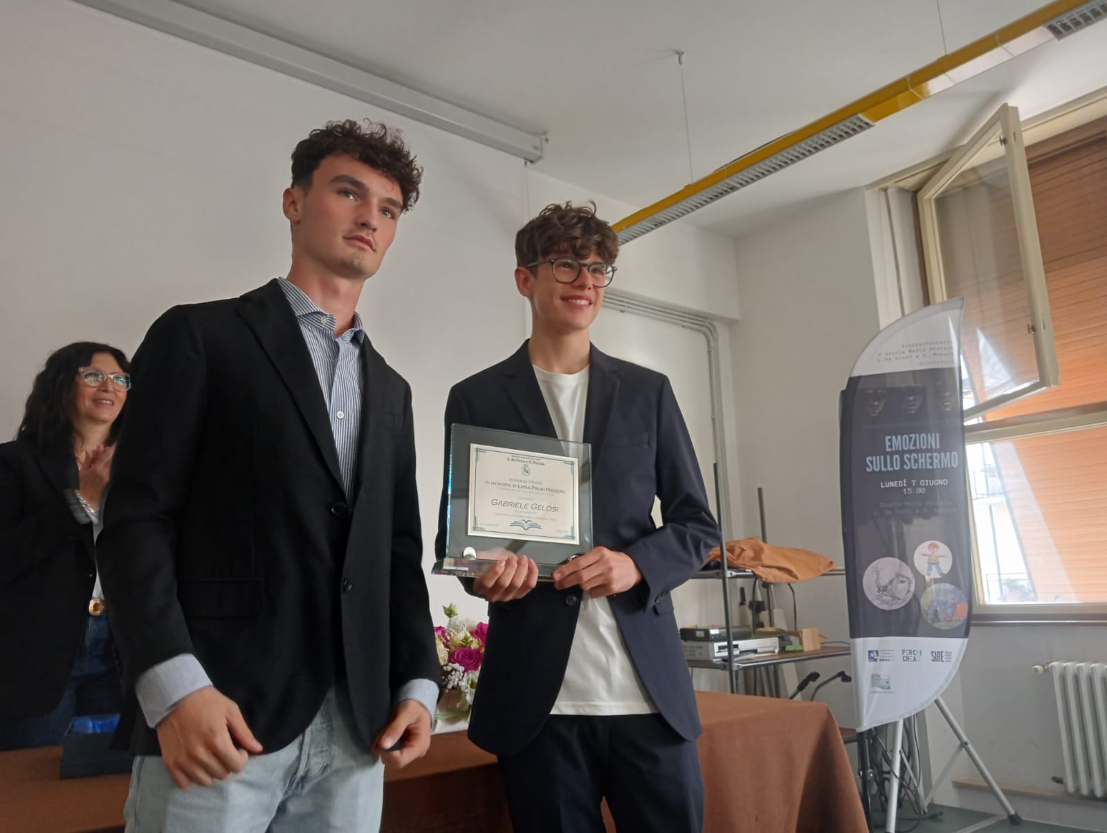 Alla premiazione era presente l’alunno individuato dal Consiglio di classe, quale destinatario del premio, Gabriele Gelosi accompagnato da entrambi i genitori e dalla zia, la famiglia Piccioni con la figlia Paola, il marito Marco, il primogenito Francesco e il Prof. Massimo Piccioni.