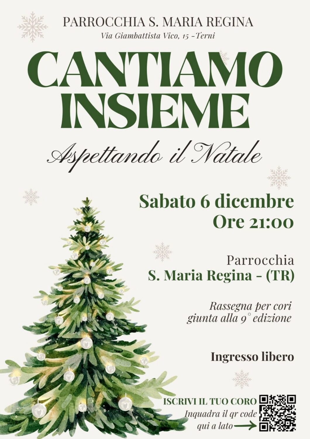 Torna anche quest’anno il 6 dicembre, presso la chiesa di Santa Maria Regina, la rassegna dei cori, un’esperienza canora in ricordo di Don Sandro Sciaboletta rimasto nei cuori di tutta la comunità. L’esperienza della rassegna dei cori è iniziata con Don Sandro e prosegue tra luci e colori tutti gli anni, l’appuntamento è previsto per sabato prossimo alle ore 21.