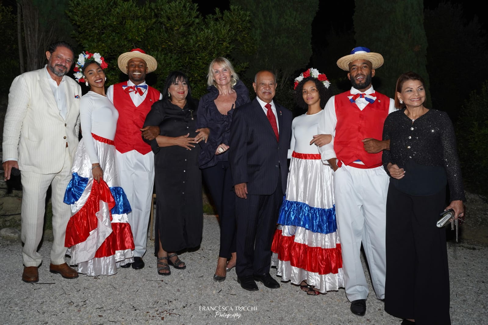 Nel corso della serata, che si è tenuta a bordo piscina in una location sulle colline tuderti, gli oltre cento partecipanti sono stati allietati da ballerini e ballerine dominicane sulle note delle musiche caraibiche, sono stati degustati sia prodotti tipici dominicani (rum, sigari e cacao) sia prodotti umbri (bollicine della Cantina Vetunna, vini bianchi e rossi della Cantina Tudernum, olio e tartufi dell’azienda agricola Anasetti, formaggi Montecristo e caffè Gallonero).