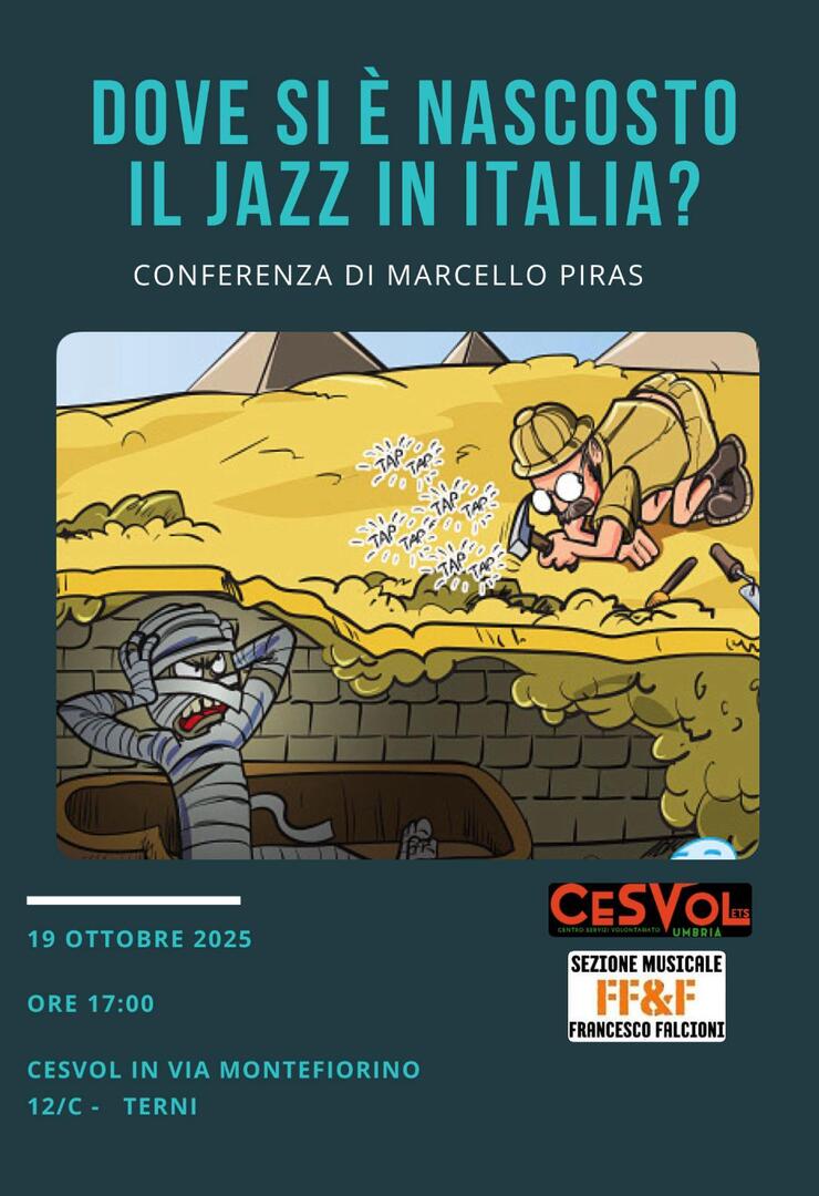 “Dove si è nascosto il jazz in Italia?” A questa domanda risponderà il noto musicologo Marcello Piras che, domenica 19 ottobre alle ore 17, torna a Terni per la conferenza che sarà ospitata nella sala polivalente del Cesvol, in via Montefiorino 12 C.