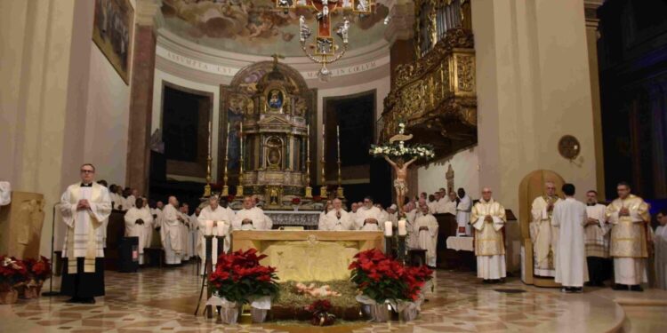Il vescovo di Terni Francesco Antonio Soddu con una solenne celebrazione ha chiuso il Giubileo della speranza nella diocesi di Terni-Narni-Amelia, oggi 28 dicembre, festa della Santa Famiglia, in un duomo gremito e alla presenza dell’intero clero diocesano, delle autorità cittadine, dei rappresentanti di movimenti e associazioni e di tanti fedeli. Hanno concelebrato il vicario generale della diocesi mons. Salvatore Ferdinandi e don Alessandro Rossini, parroco della Cattedrale. La liturgia è stata animata dalla corale diocesana diretta da don Sergio Rossini, organista il maestro Simone Maccaglia; il servizio all’altare è stato curato dai seminaristi e ministranti, coordinati dal cerimoniere Marco Farroni.