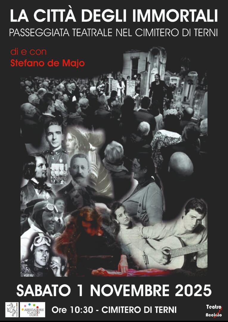 Sabato 1 novembre alle ore 10.30, torna la passeggiata teatrale dell’attore e autore Stefano de Majo nel cimitero comunale di Terni in occasione delle festività che celebrano i defunti, giunta alla ottava edizione, che neppure la pandemia ha fermato.