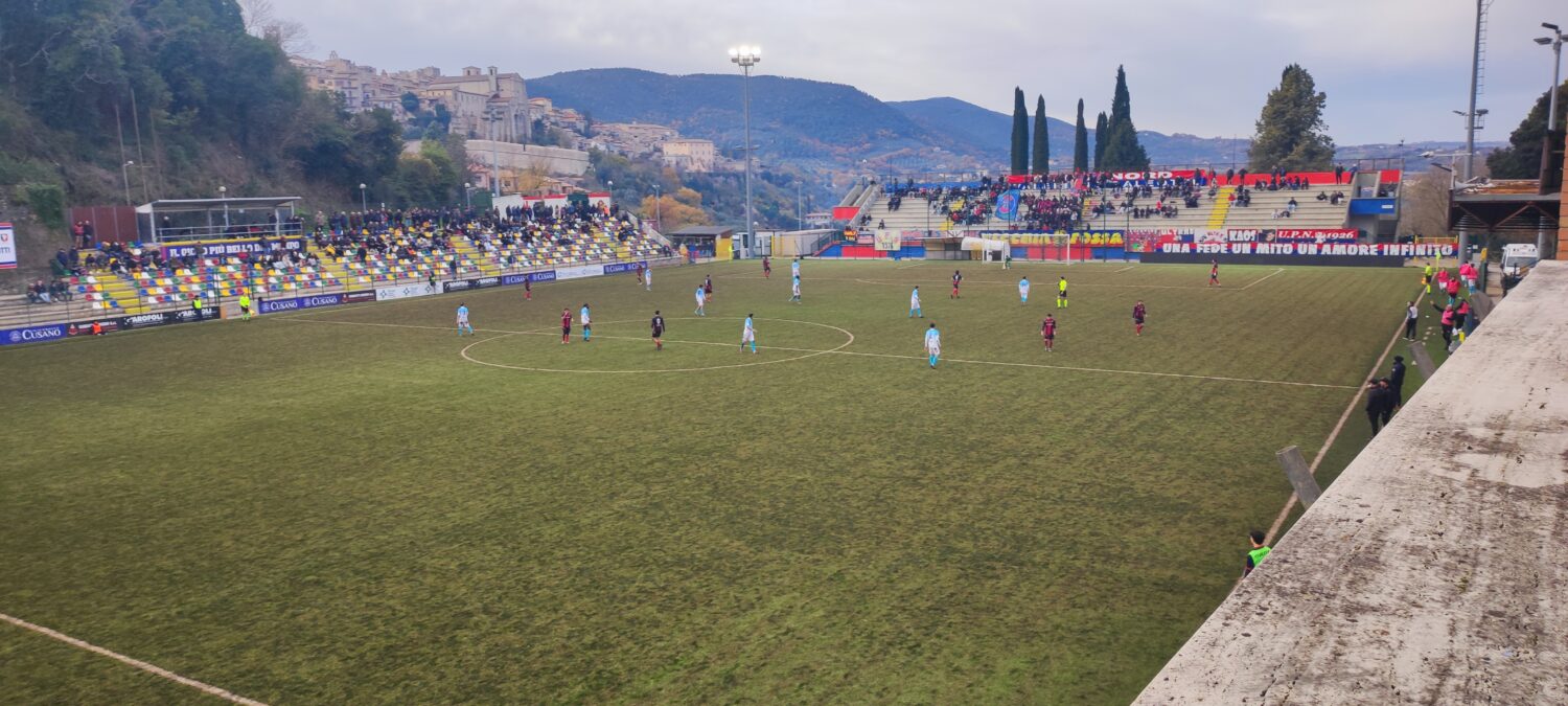 È stata una partita “maschia” come si diceva qualche tempo fa: Narnese e Bastia, secondo tradizione se le sono date, sportivamente, di santa ragione senza però che ci sia stato un vincitore. Perché la casella dei gol del Bastia è rimasta a zero è presto detto: non hanno mai tirato in porta se non un alleggerimento nel primo tempo. Erano venuti coperti, non volevano perdere e ci sono riusciti. La Narnese ha fatto un po’ di più, solo un po’: grande recriminazione quando al 75’ in una mischia colossale in area dei biancorossi Mora ha tirato fuori da quattro metri. Nessuno ha capito come ha fatto. Niente di più. Il vero spettacolo è stato tutto dei tifosi, quelli rossoblù ma anche quelli biancorossi che non hanno mai smesso di incitare, cantare. Quelli della Narnese erano anche reduci da una matriciana prima del fischio d’inizio come dire che si può socializzare in tanti modi. I tifosi non se la sono mandati a dire: gli improperi sono arrivati da tutte le parti e pare strano come tutti i tifosi conoscano le mamme di tutti i giocatori, proprio una cosa da approfondire.