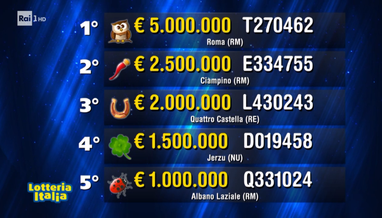 Il più importante è stato venduto a Gubbio serie O 475636 del valore di 50 mila euro