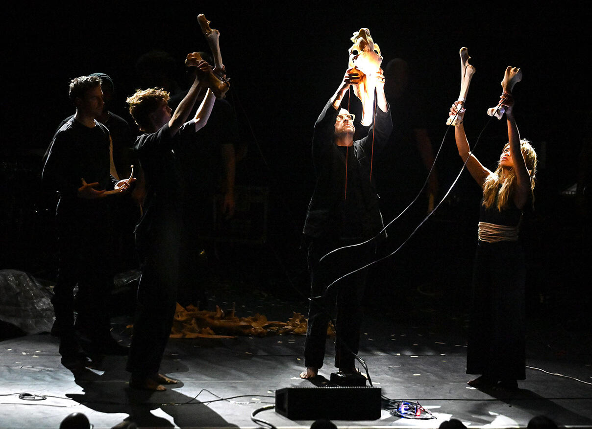 In scena Matthew Herbert col suo armamentario elettronico, un’orchestra, due performer e ossa di cavallo sparse sul palco.