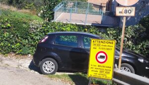 E’ incredibile e soprattutto sorprendente: scendendo la strada di Santo Pietro, si incontra inopinatamente un segnale che indica che avanti non ci si può andare. Benissimo. Un automobilista può anche leggere per caso quello che viene spiegato nel segnale.