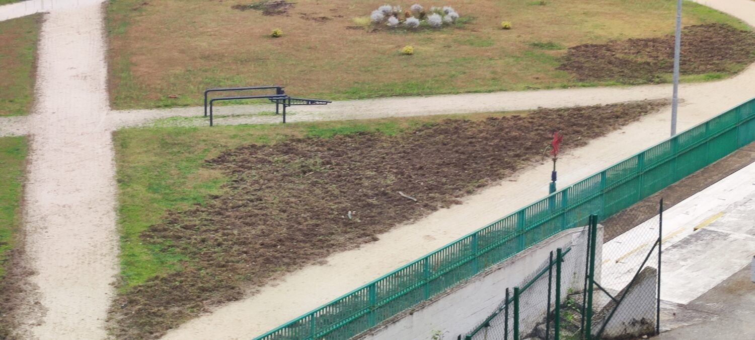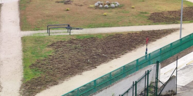 Rovinata tutta la zona ad ovest, dal lato della gradinata. Chissà, l’altra parte se la saranno lasciata per stanotte. Non hanno cercato di entrare allo stadio della Narnese e della Ternana women solo perché quello è di materiale sintetico e non deve aver appetito i cinghiali.