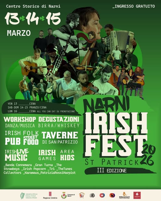 Sta diventando, piano piano, un appuntamento consolidato: dal 13 al 15 marzo riecco il “Narni Irish Fest” in Piazza Priora, davanti al Comune ed oltre. L’organizzazione si poggia in preferenza sulla Corsa all’Anello e le sue associazioni, associazioni che hanno un bel daffare per mettersi alle spalle tanti discorsi sul Medioevo e poi tuffarsi in una atmosfera irlandese, particolarmente azzeccata in questi giorni di pioggia.