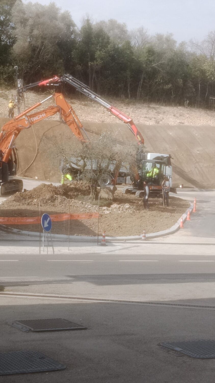 Narni. Si sta piantando un ulivo nella aiuola centrale dello stradone Superconti – Suffragio. Lavori pressochè finiti
