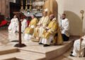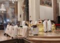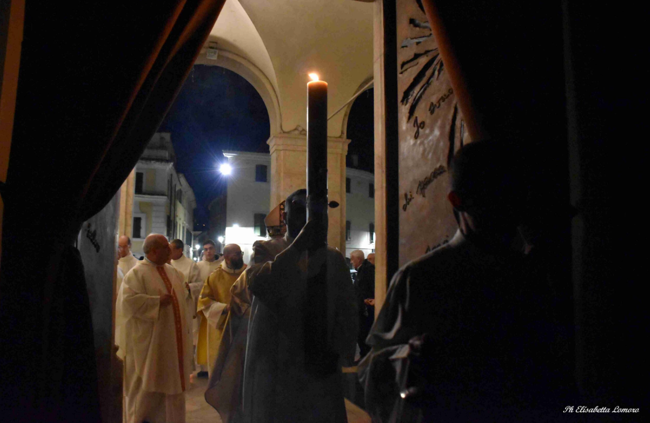 In precedenza mons. Soddu aveva benedetto il fuoco nuovo e acceso il cero pasquale, portato poi in processione lungo la navata centrale del duomo, al buio e al canto del Lamen Christi.