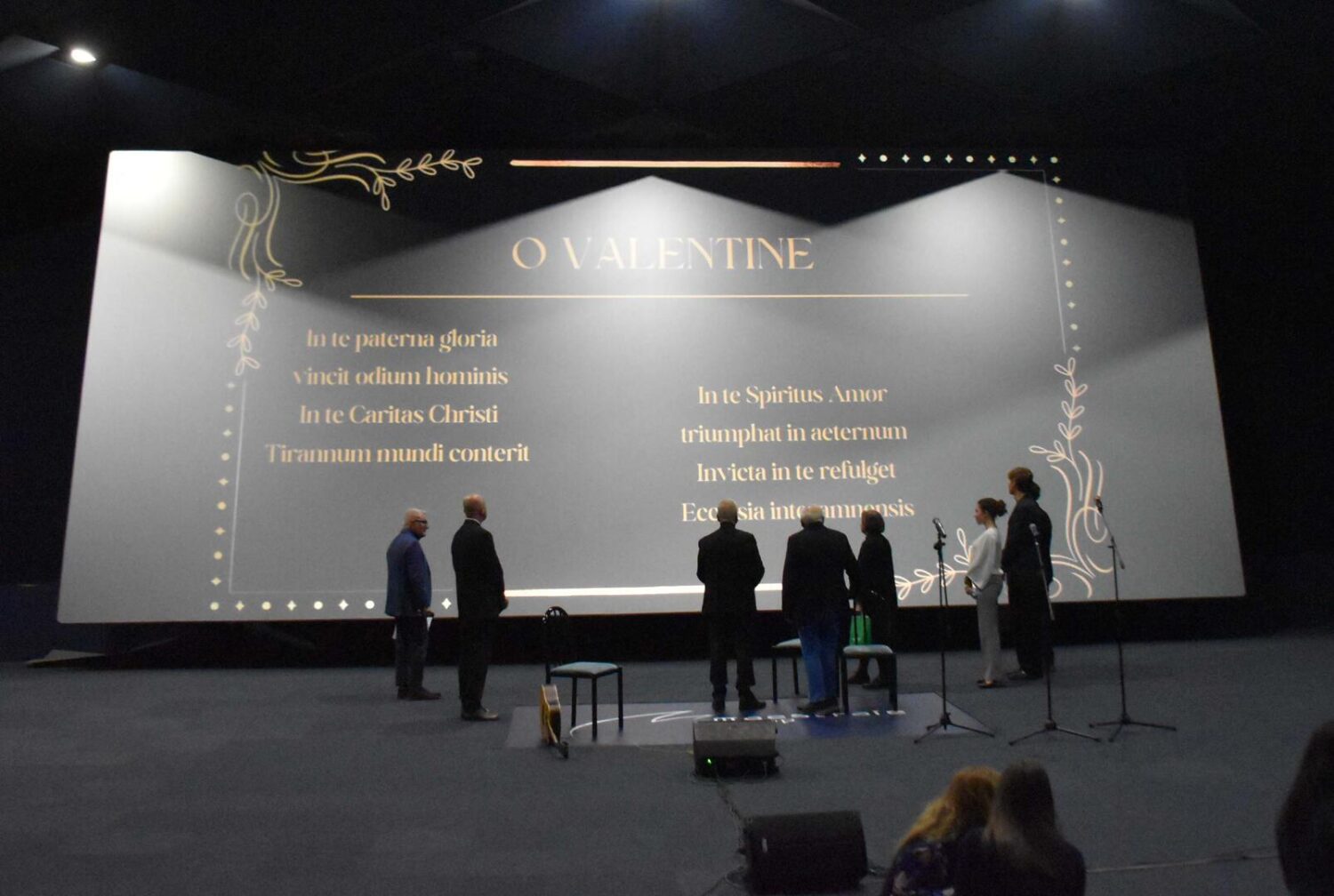 – Per la sezione Arti performative e musicali gli studenti  Valentina Fiorelli , Leonardo Fioriti,  Leonardo Lupattelli  della classe 5^ABS dell’Istituto Tecnico Tecnologico “Allievi Sangallo” di Terni, docente Massimiliano Proietti, sono stati i vincitori con la composizione dell’Inno a San Valentino, in lingua latina con strofe di quartine che rilegge alcuni punti della storia narrata nella Passio Sancti Valentini con la musica del primo modo gregoriano da cui traggono origine le melodie con andamento solenne e l’alternarsi di due melodie affidate a voci differenti.