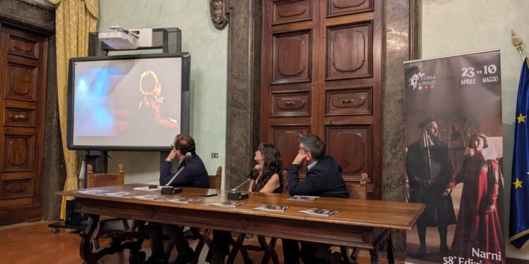 Presentata questa mattina alla regione Umbria la 58^ edizione della  Corsa all’anello di Narni in programma dal 23 aprile al 10 maggio. Una manifestazione che negli anni ha consolidato il proprio ruolo nel panorama nazionale delle rievocazioni storiche, diventando un appuntamento di richiamo extraregionale capace di attrarre visitatori da tutta Italia.