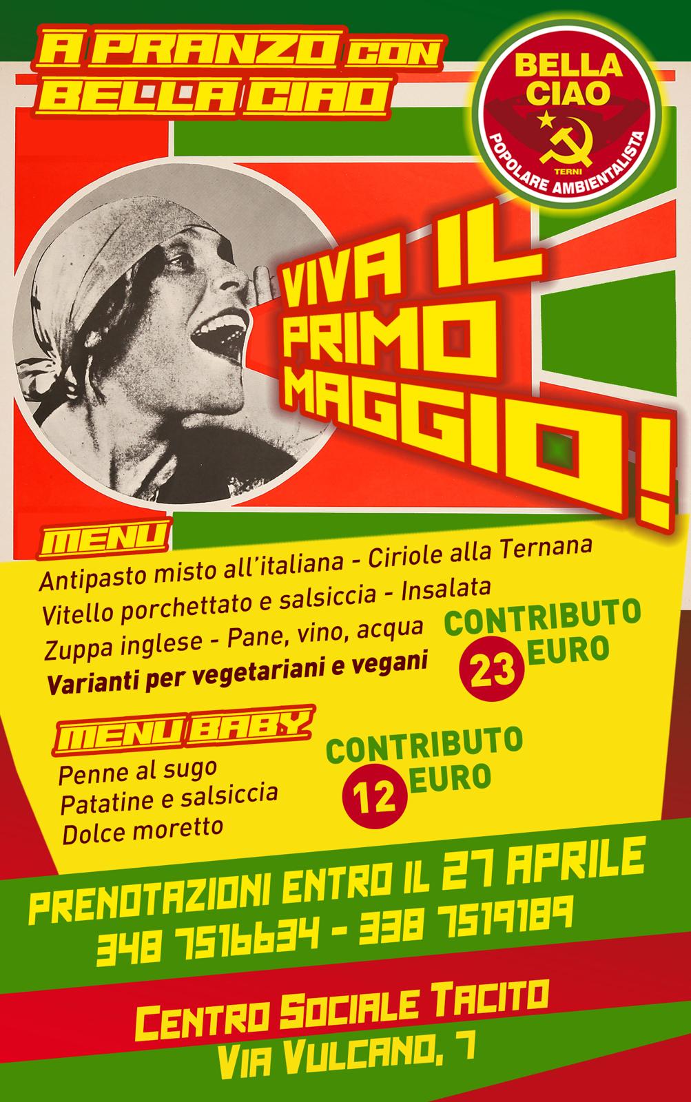 Torna il tradizionale pranzo del Primo Maggio organizzato da Bella Ciao. L’appuntamento è al centro sociale di comunità Tacito, in via Vulcano 7, dove si terrà la Festa delle lavoratrici e dei lavoratori.