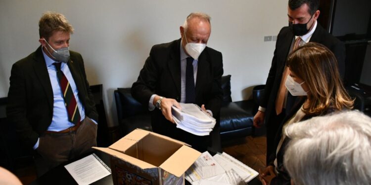 Consegnate alla presidente Tesei le oltre 17 mila firme raccolte dal Centro Coordinamento Ternana Club in favore del progetto clinica-stadio di Stefano Bandecchi