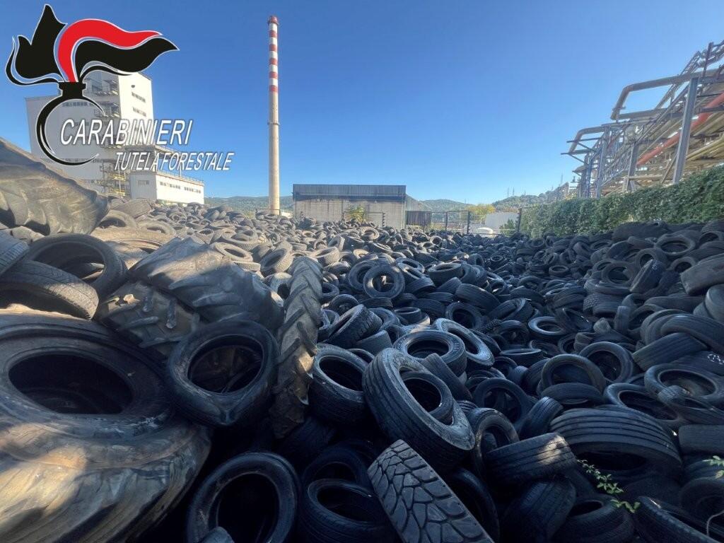 Nel sito è stato rilevato lo stoccaggio irregolare di un ingente quantitativo di materiale, stimato in quasi 1.000 tonnellate tra pneumatici fuori uso e “ciabattato” (materiale derivante dalla prima fase di lavorazione dello pneumatico).