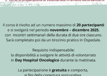 L’associazione Orvieto contro il cancro promuove il nono corso di preparazione al volontariato in ambito sociosanitario che inizierà nel mese ...