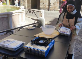Narni. Le suore cistercensi in Piazza dei Priori a cucinare pizzoccheri pugliesi