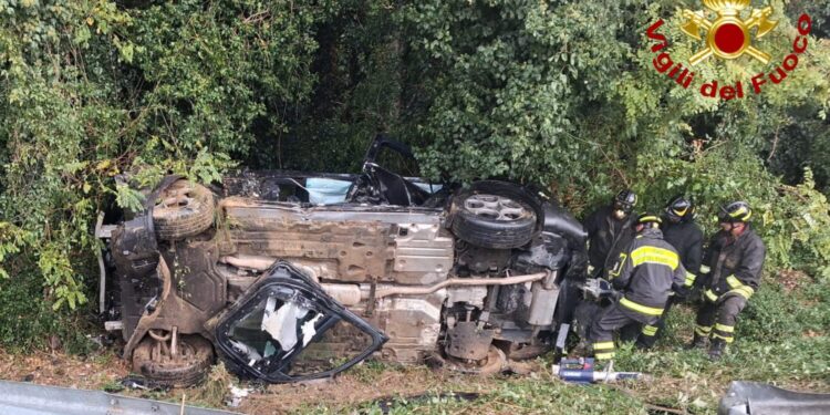 Un Suv Alfa Romeo Stelvio , con due persone a bordo, un uomo e una donna, moglie e marito originari delle Marche , è uscito di strada finendo nella sottostante scarpata.