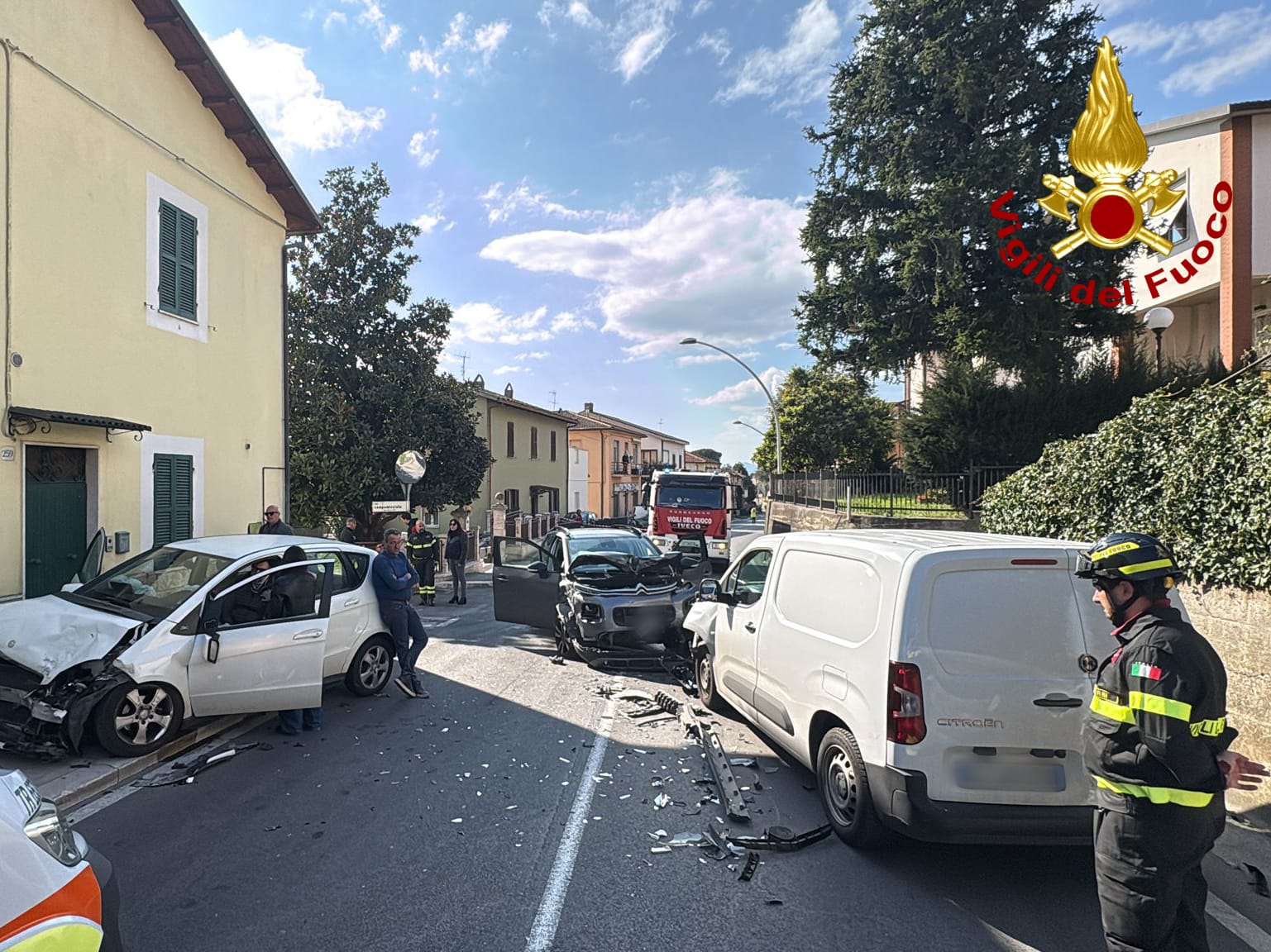 Un incidente stradale si è verificato poco prima delle ore 15 in via Campomicciolo. Nello scontro frontale sono rimasti coinvolti tre mezzi: una Citroen Fire Cross, una Mercedes A 160 e un furgoncino Citroen Berlingo.