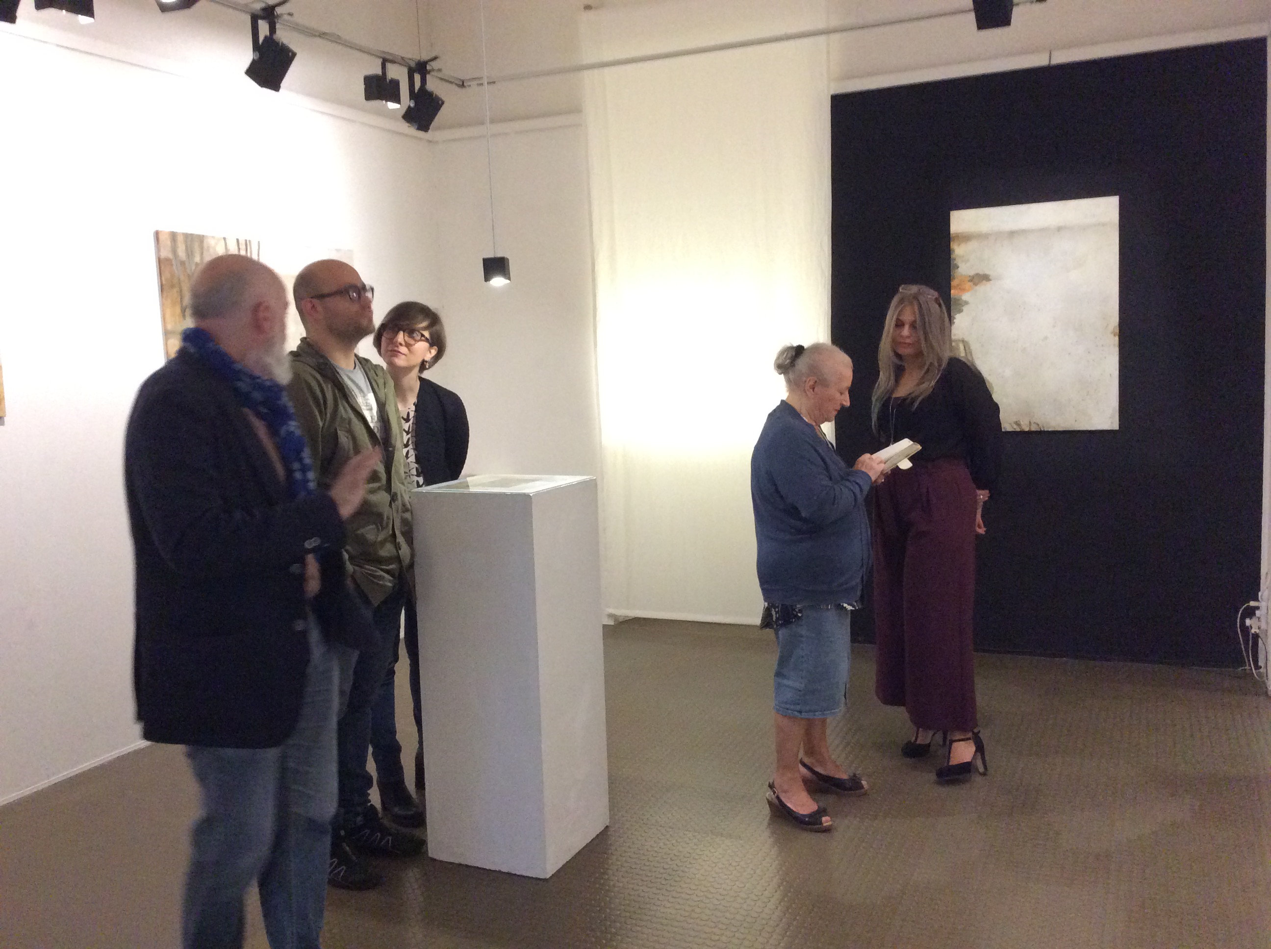“Il termine diadi indica una sorta di contrappunto tra due parti di una stessa entità. La mostra è articolata in due stanze, spiega l’artista, dove ci sono dipinti chiari in una e dipinti scuri nell’altra. In tutti si ripetono delle strutture figurative, per cui grandi spazi vuoti con piccoli intrecci di linee e forme che hanno una somiglianza con delle griglie. Però non vogliono rappresentare niente di concreto, forse sono forme che vogliono avere un po’ di spazio dove uno spazio tridimensionale non c’è. La riflessione, conclude Diletta Boni, è più sulla pittura che sul significato: la ricerca dei colori, delle velature, dei rapporti tra pieni e vuoti e le linee portanti dell’opera.”