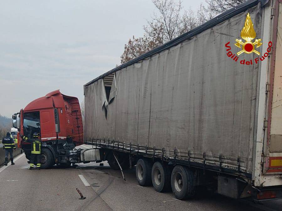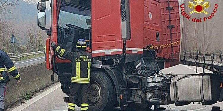 I vigili del fuoco di Terni sono intervenuti nel primo pomeriggio lungo la E-45 per un autotreno che si è intraversato sulla careggiata, dopo aver urtato il guard rail, fra gli svincoli di Acquasparta e Montecastrilli.