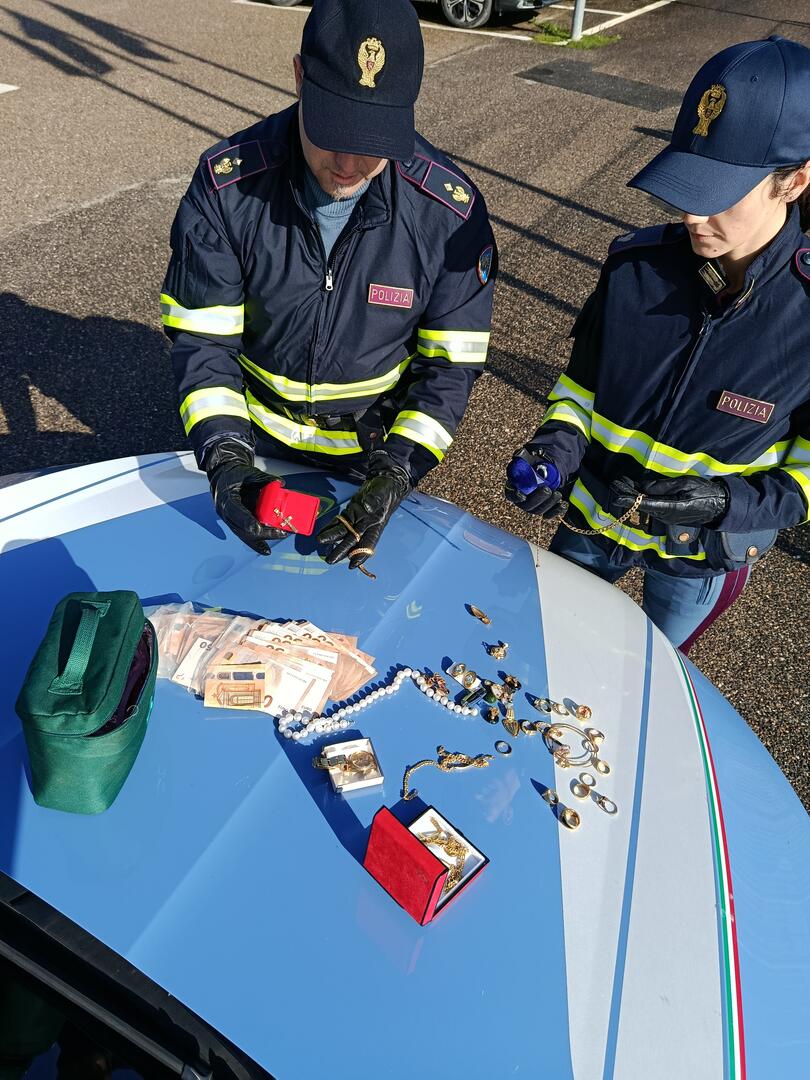 Entrambe davano esito positivo, infatti indosso all’uomo venivano rinvenuti alcuni monili, mentre sotto il sedile di guida veniva rinvenuta una pochette di colore verde contenete denaro contante e gioielli di cui il conducente non sapeva darne spiegazioni.